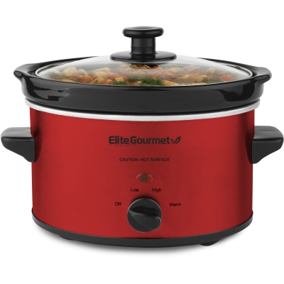 2 Qt. Oval Electric Slow Cooker with Glass Lid (Metallic Red)